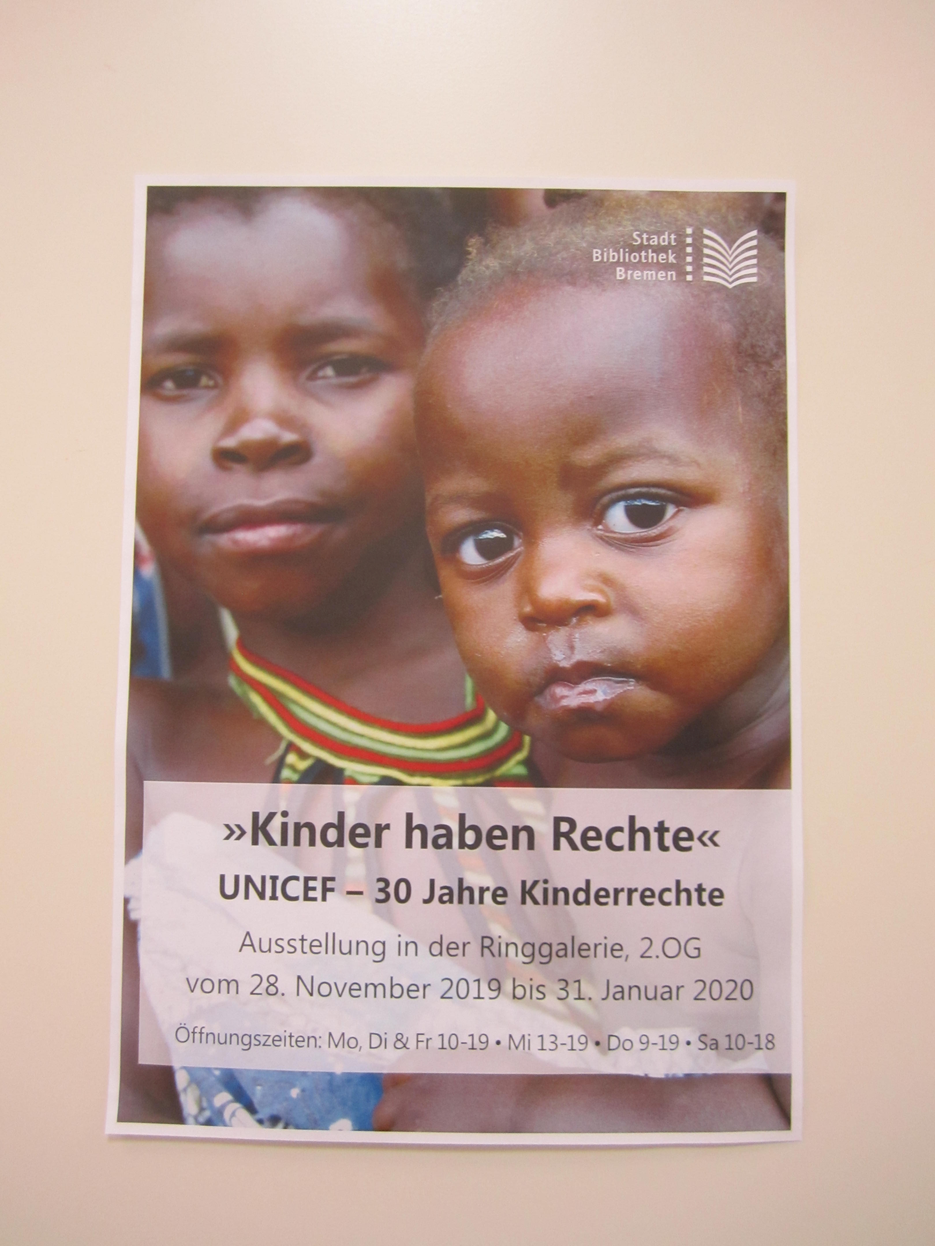 30 Jahre Kinderrechte. Grund genug, sich im Sachunterricht der Klassen S1 und S2 ausführlich mit diesem wichtigen Thema zu beschäftigen. Passend dazu gab es eine kleine Ausstellung in der Stadtbibliotek Bremen. Am Donnerstag, den 30.01.20 fuhr eine Gruppe Schüler und Schülerinnen der beiden Klassen nach Bremen, um sich die Ausstellung anzuschauen. Mit unseren Bussen ging es bis in die Neustadt und dann mit der Straßenbahn in die Stadtmitte, schon das war für viele Schüler/innen ein echtes Erlebnis. Nachdem wir uns die Ausstellung angesehen hatten, konnte noch eine gute Stunde in der umfangreichen Kinderbücherei der Stadtbibliotek gestöbert werden, bevor es zu einem verspäteten Mittagessen zurück zur Schule ging.