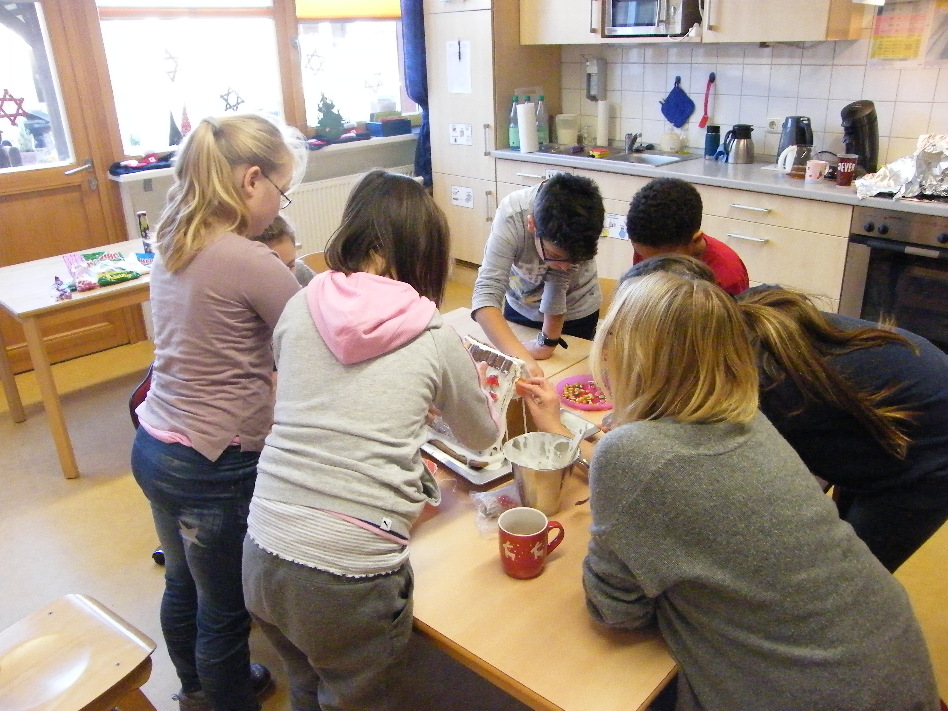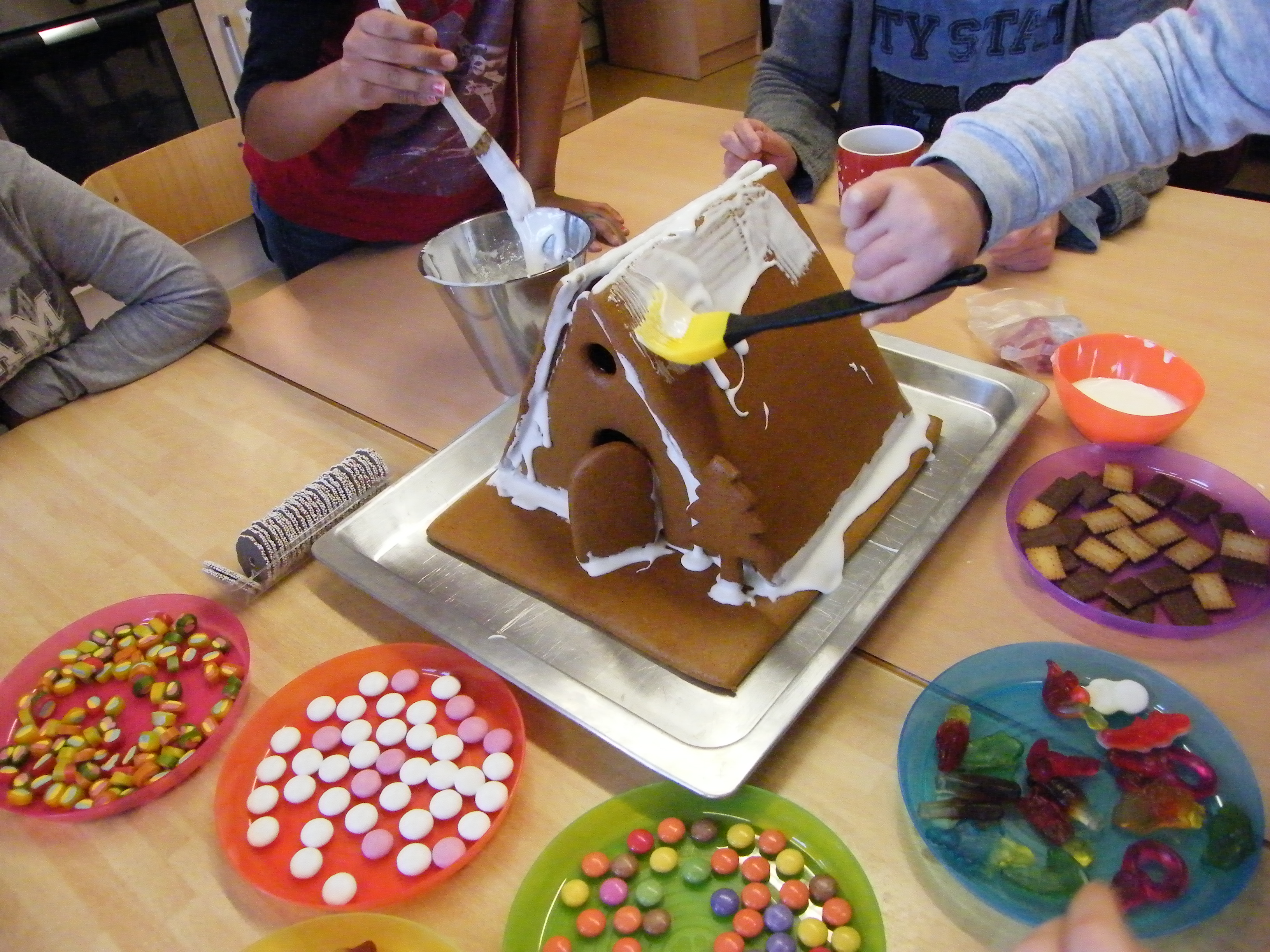 Im Advent darf es auch mal etwas besonderes im Hauswirtschafts-Unterricht sein. Und so durften die Schüler der Klasse 5 heute dieses tolle Pfefferkuchenhaus nach Herzenslust verzieren. Mit Feuereifer waren alle dabei. Das Ergebnis ist fast zu schade zum Essen. Aber nur fast.