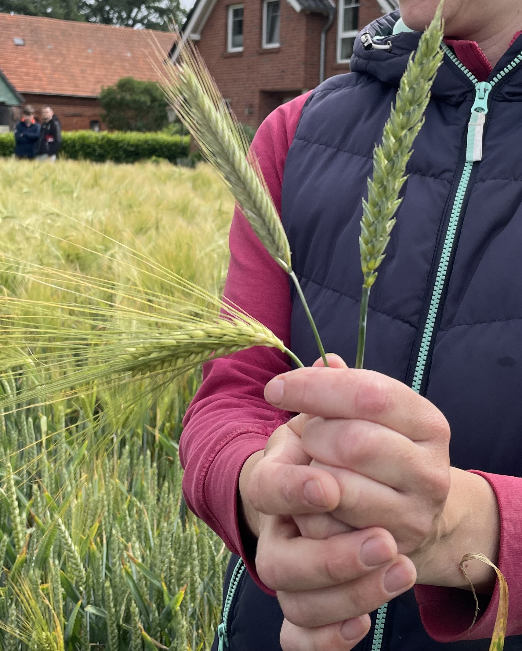 Bereits im September 2023 waren die Klassen S3 und S5 auf dem Hof Seevers in Stuhr zu Besuch. So freuten sich alle auf einen erneuten Ausflug zum Bauernhof am 06.06.2024. Diesmal ging es darum, verschiedene Getreidesorten kennenzulernen. Woran kann man Roggen, Weizen und Gerste unterscheiden? Und wie bekommt man eigentlich das Korn von der Ähre? Aber natürlich durfte auch ein Besuch bei den Kühen und Kälbern nicht fehlen. Allen Schüler/innen hat der Ausflug wieder gut gefallen. Vielen Dank an Wiebke Seevers (feineslanderleben), die diese 2 Stunden wieder so toll mit uns gestaltet hat.