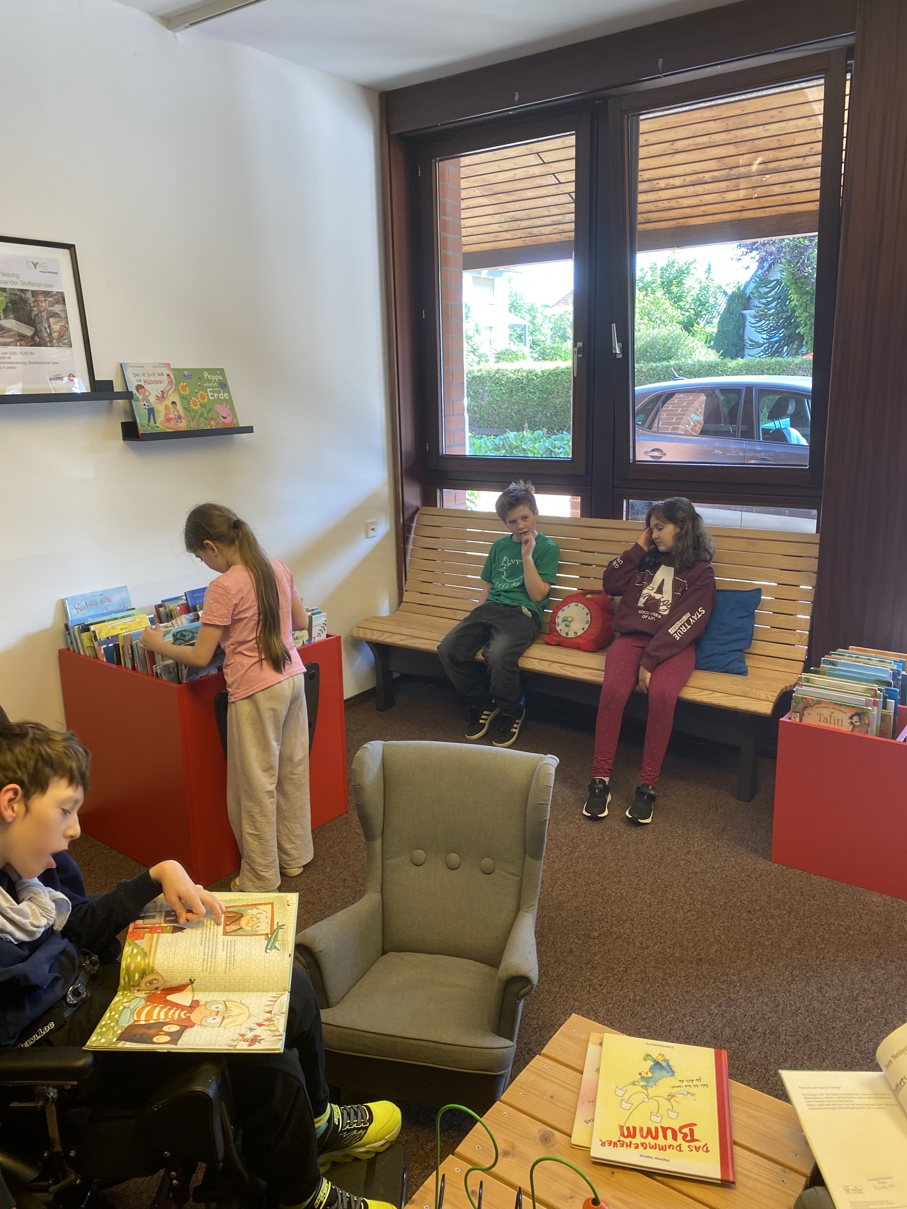 Die Klasse P1 hat die Bücherei Syke besucht. Hier haben die Kinder die große Auswahl an Büchern bestaunt und sich über die anderen Medien informiert. Es war ein schöner Tag für alle :-)