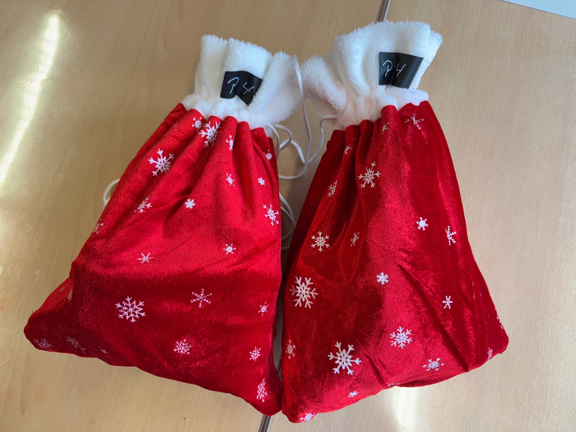 Wir sitzen gerade beim Frühstück, da klopft es an die Tür. Das gesamte Küchenteam steht mit Weihnachtsmützen vor der Klasse und hat prall gefüllte Nikolaus-Säcke dabei. Zwei davon sind für unsere Klasse. Die hat der Nikolaus für uns in der Erlenschule abgegeben. Was für eine Überraschung! Staunende Gesichter und strahlende Kinderaugen sind mit Sicherheit der größte Lohn für den Nikolaus. Vielen lieben Dank!