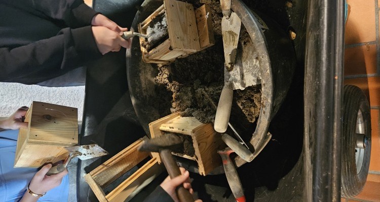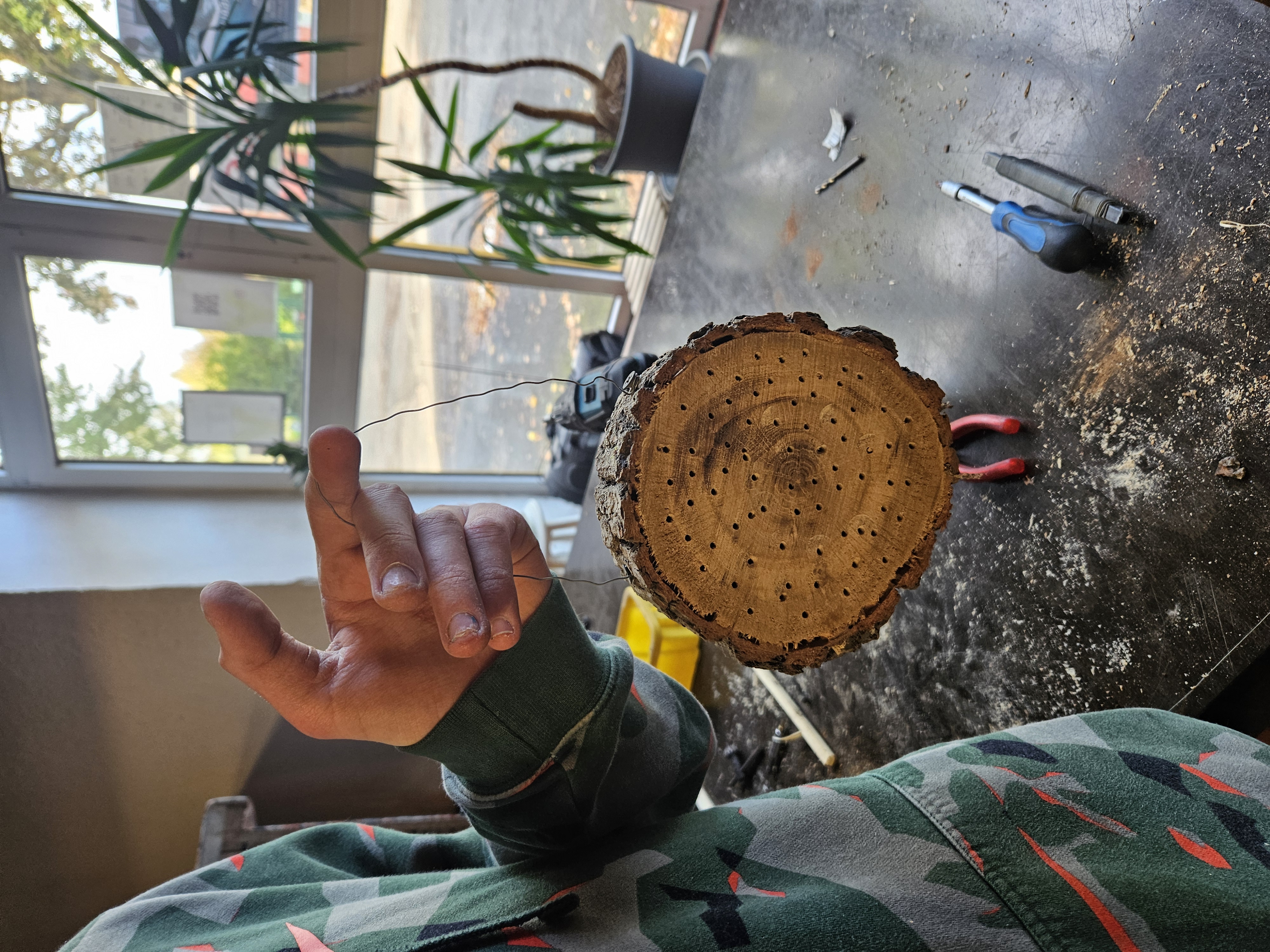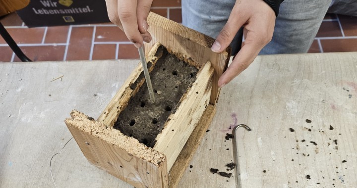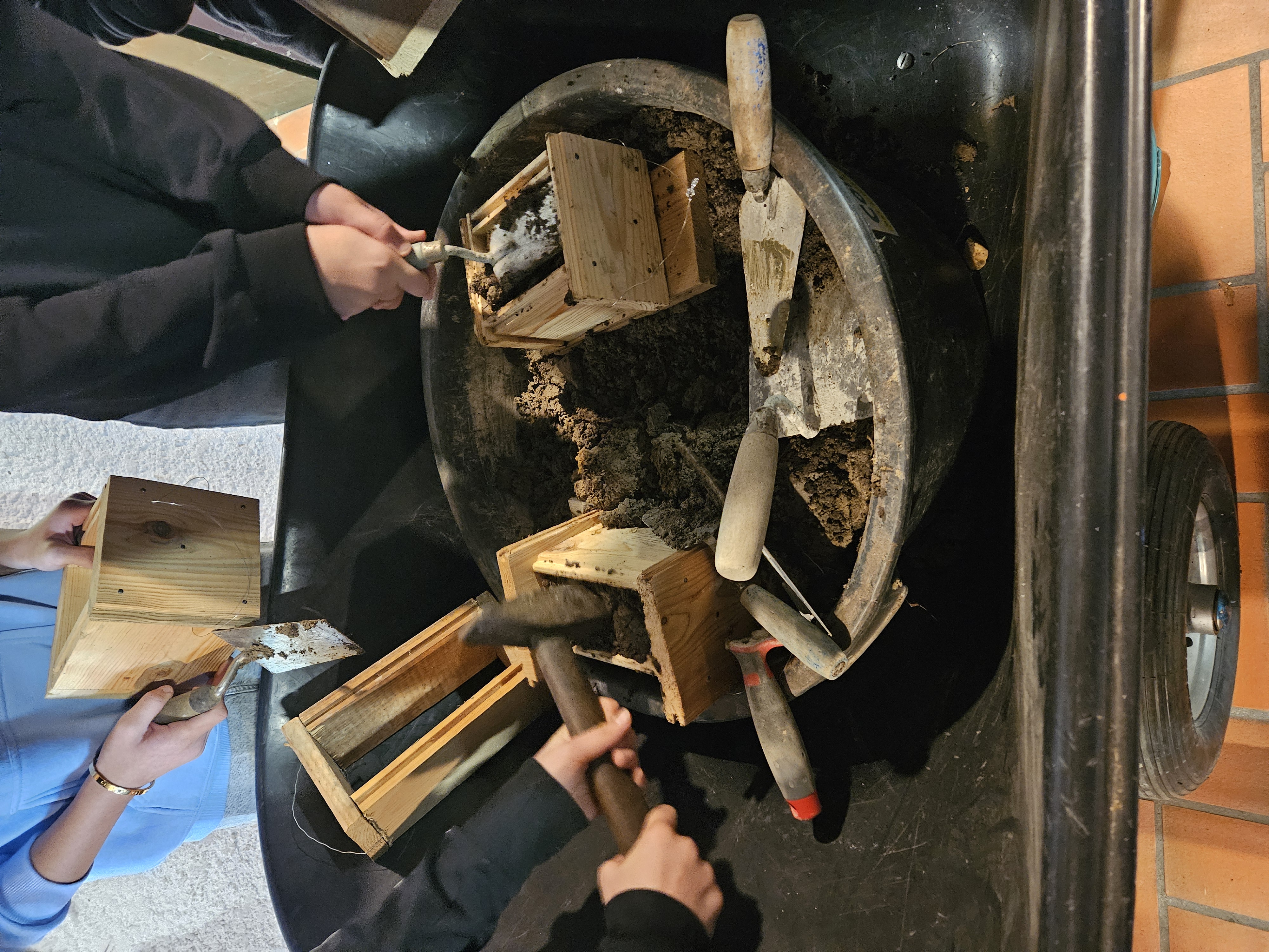Unter der fachkundigen Anleitung von Henning Greve, einem engagierten Insektenbetreuer mit langjähriger Erfahrung, wurden die Schüler und Schülerinnen Schritt für Schritt durch den Bau der Insektenhotels geführt. Henning stellte uns nicht nur das notwendige Material zur Verfügung, sondern erklärte auch geduldig, wie jedes Einzelteil zusammengesetzt werden musste. Die Schülerinnen und Schüler konnten dabei viel über den Nutzen solcher Hotels für die heimische Insektenwelt lernen.
