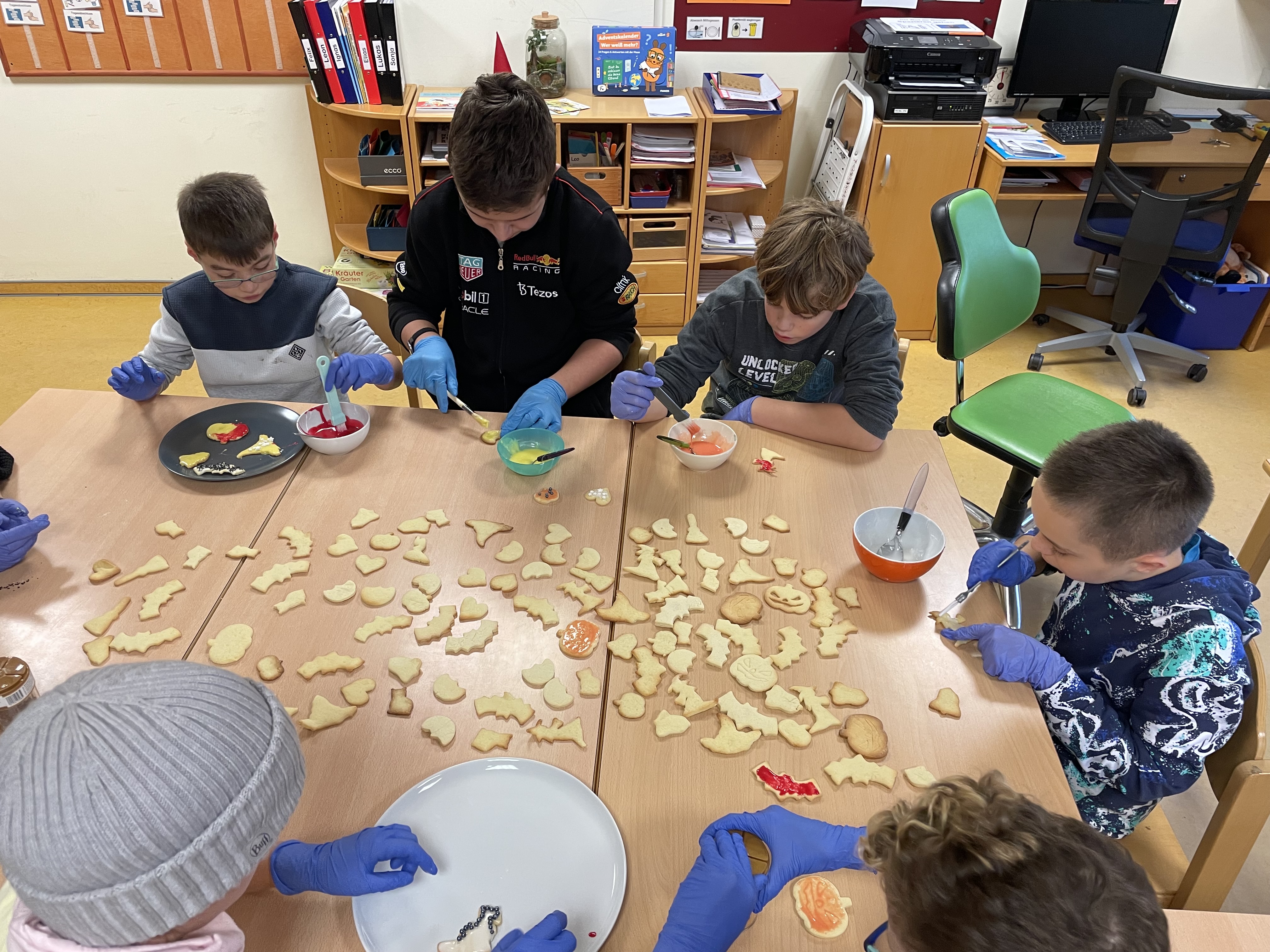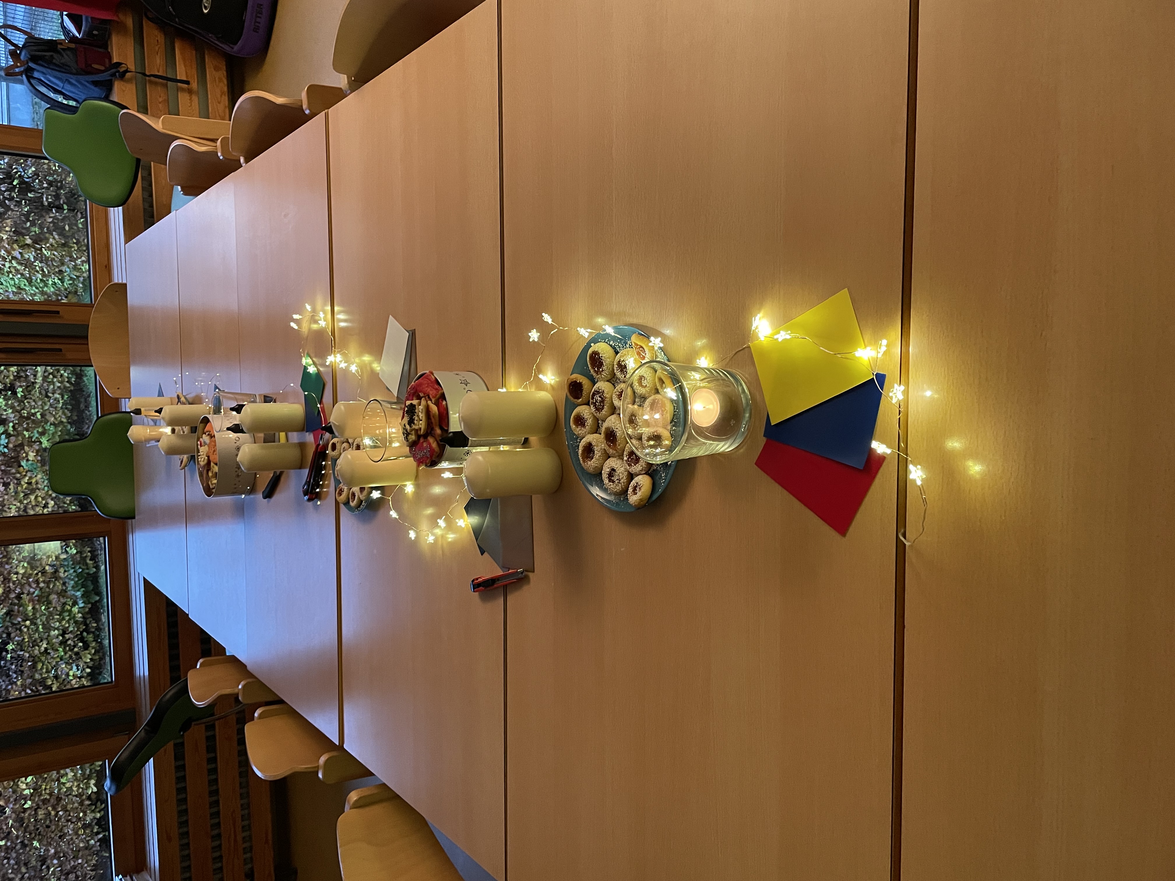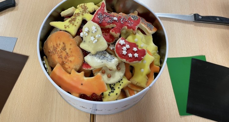 Am Mittwoch, den 13.11.2024 hat die Klasse S6 zu einem Elternnachmittag eingeladen. Im Vorfeld wurden gemeinsam herbstliche Kekse gebacken und verziert und der Klassenraum stimmungsvoll hergerichtet. Bei Keksen und Punsch saßen Eltern, Schüler*innen, Geschwister und Lehrkräfte gemütlich beisammen und verzierten passend zur dunklen Jahreszeit gemeinsam dicke Kerzen. Während die Erwachsenen sich danach weiter unterhielten, waren die Schüler*innen mit mitgebrachten Taschenlampen in der dunklen Schule und auf dem Außengelände unterwegs. Viel zu schnell waren die 2 Stunden um und es hieß ab nach Hause. Für alle Beteiligten ein wirklich schöner Nachmittag.