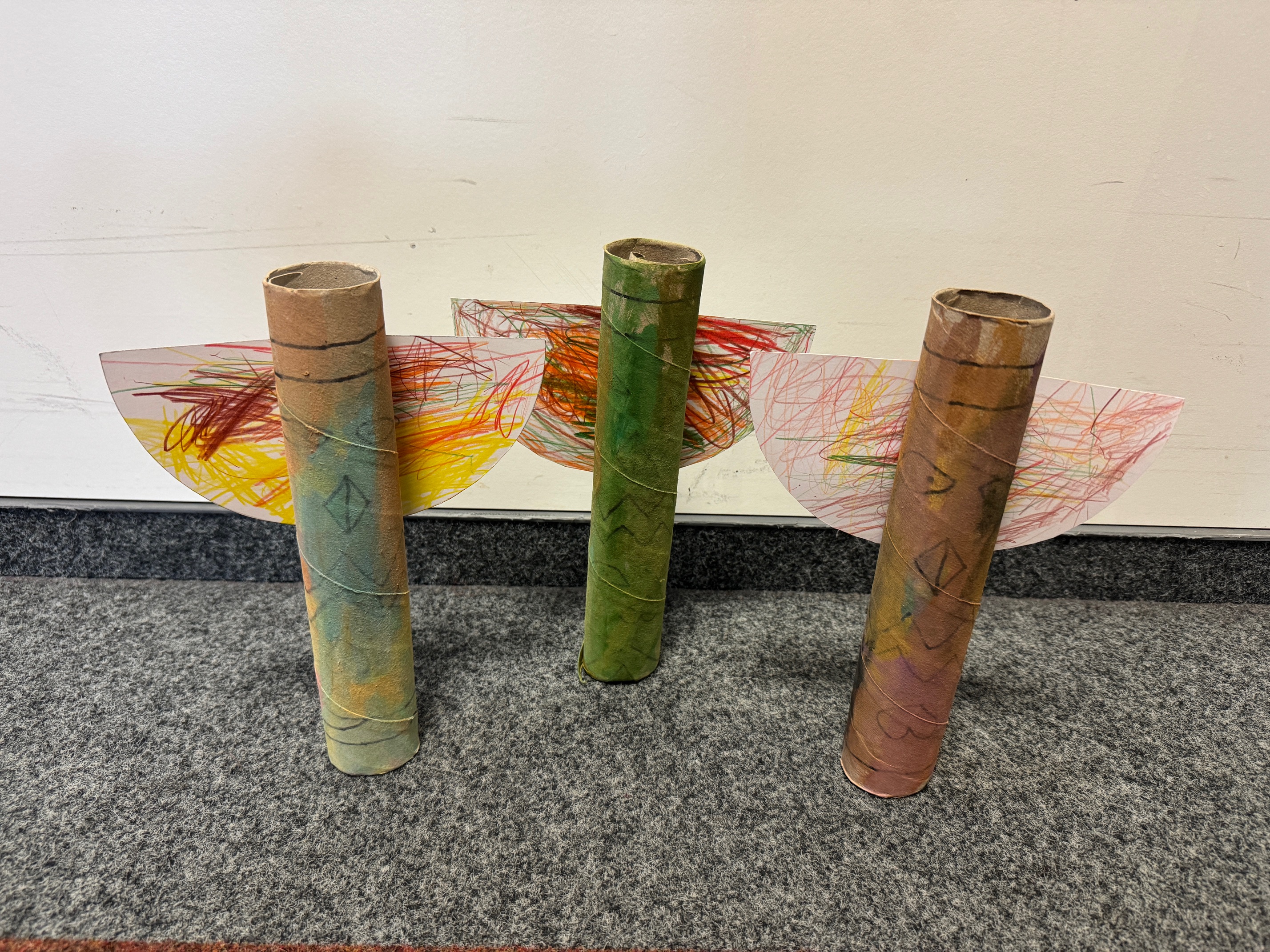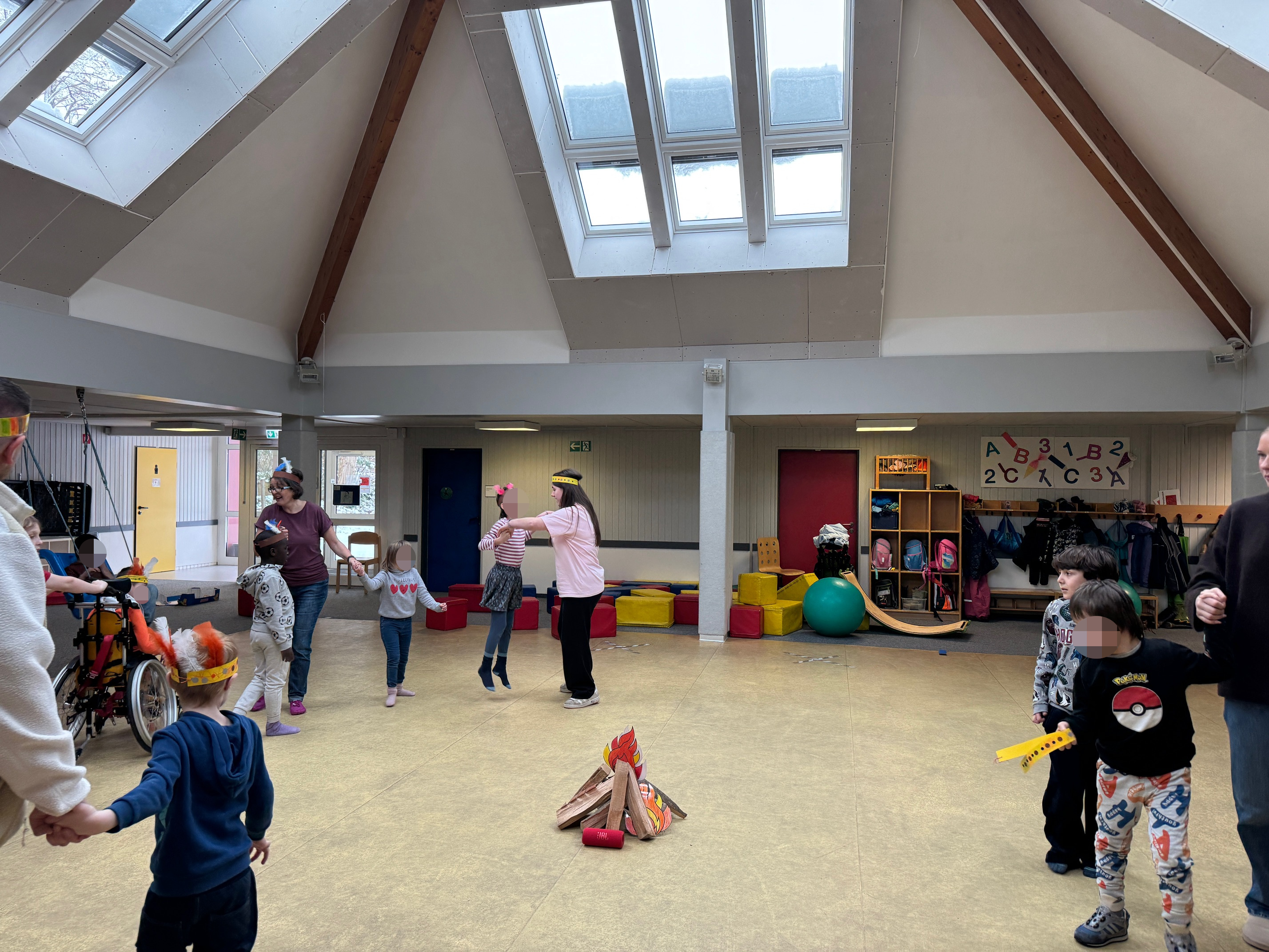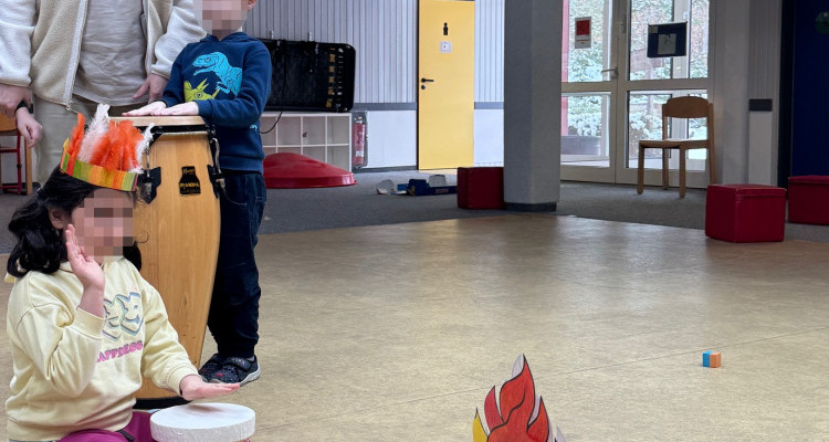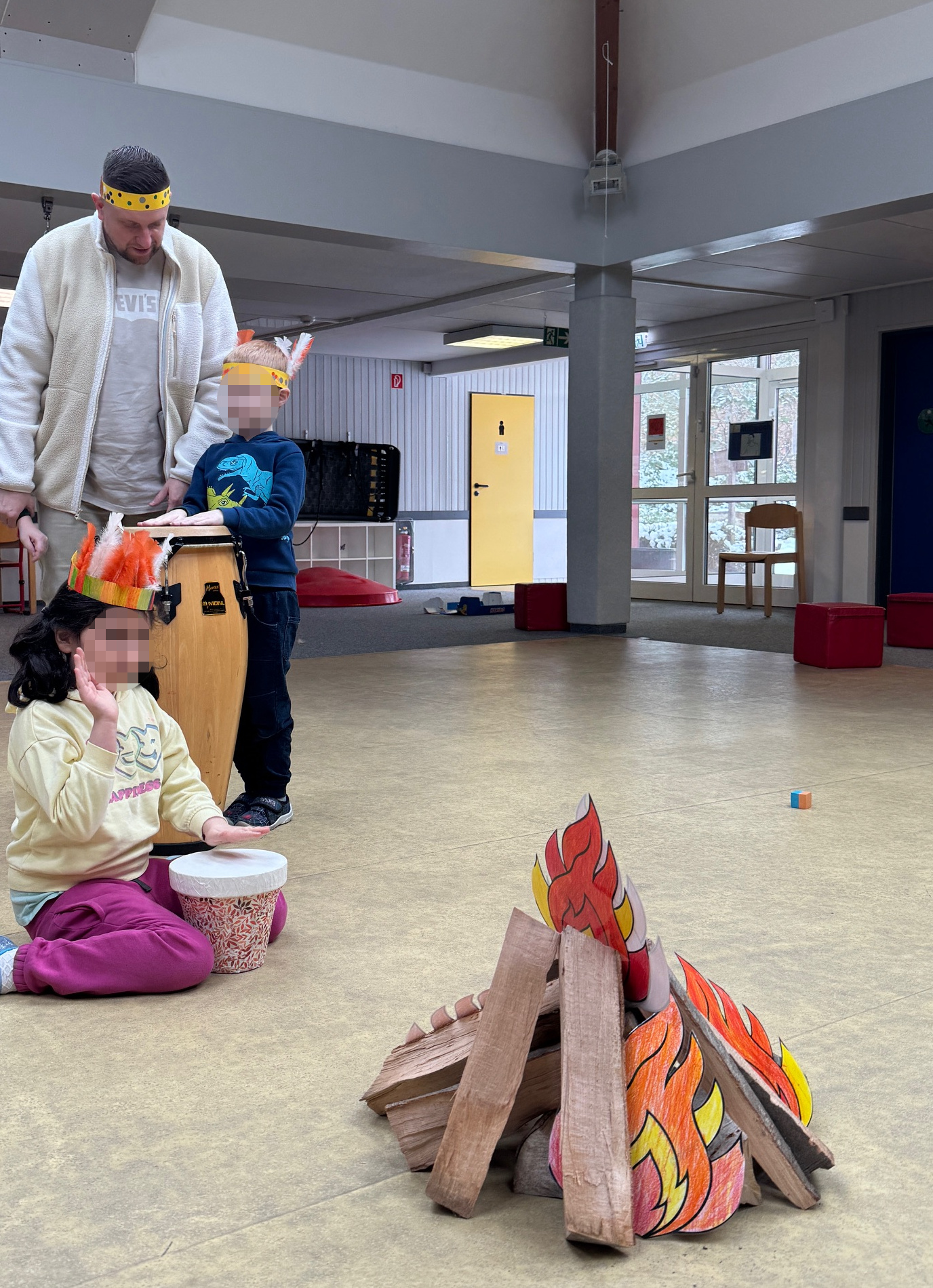 Etliche Wochen haben sich die Klasse P2 und P4 im Sachunterricht mit der indigenen Bevölkerung Nordamerikas beschäftigt. Rund ums Thema wurden Geschichten erzählt und es wurde viel gebastelt, gesungen und gemalt. Zum Abschluss des Themas haben sich die beiden Klassen im Atrium um ein Lagerfeuer getroffen, um sich gegenseitig zu erzählen, was sie während der letzten Wochen erlebt haben. Dann wurde gemeinsam getrommelt und ums Lagerfeuer getanzt. Ein toller Abschluss dieses spannenden Themas.