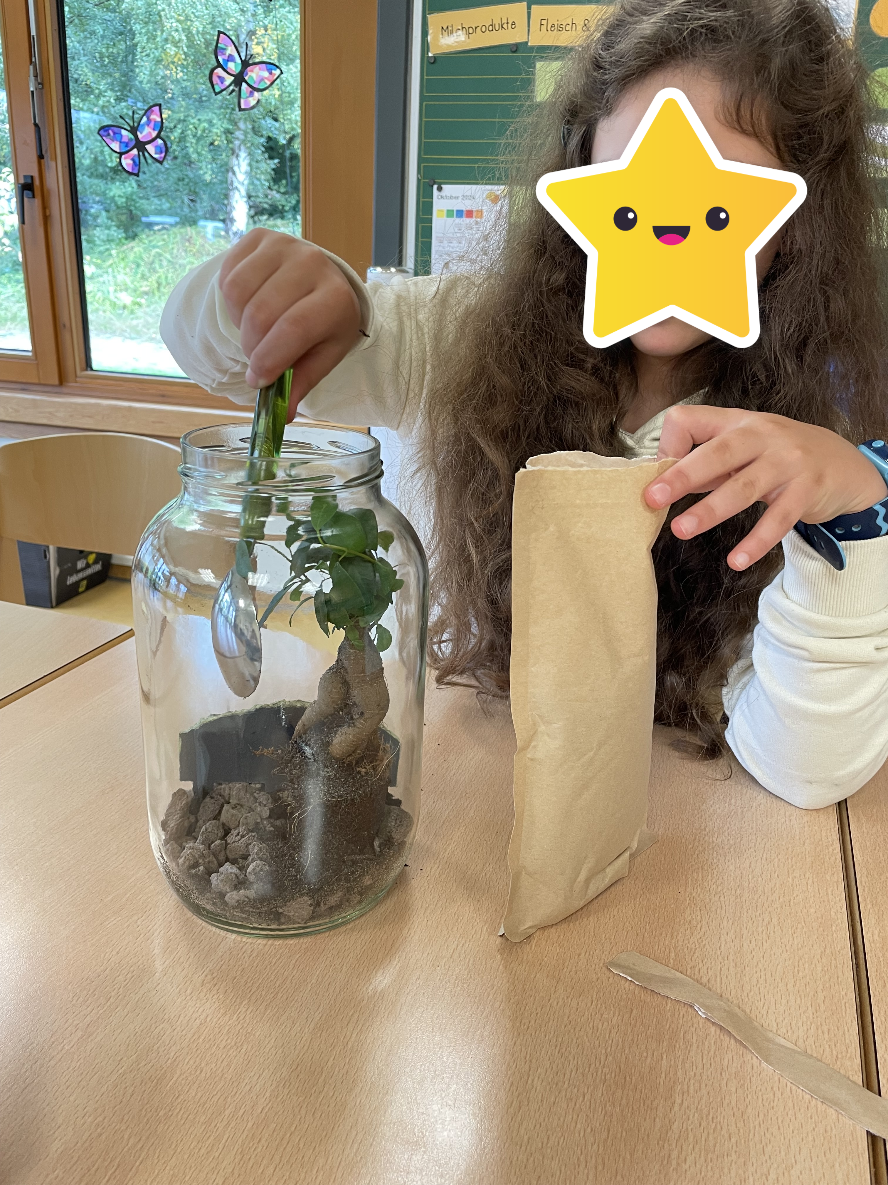Vielen Dank an die Mutter unserer Schülerin, die uns dieses Erlebnis nicht nur mit ihrem Hinweis auf solche Flaschengärten, sondern auch durch ihre finanzielle Unterstützung ermöglicht hat.