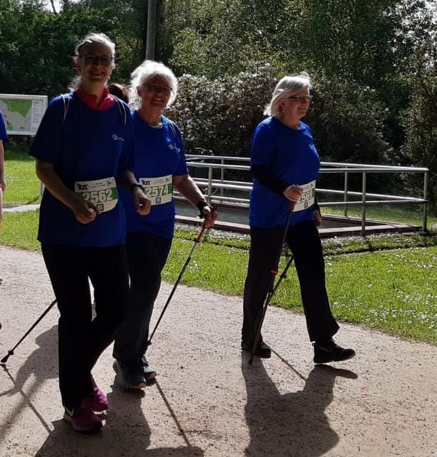 Wir drei Kolleginnen halten gut im Walker-Feld mit und es ist noch Luft für ein kleines Gespräch während unseres flotten Schrittes. Die Straßen sind gesäumt von gut gelaunten Menschen, welche uns zurufen, klatschen und johlen. Das spornt zum Weitermachen an.