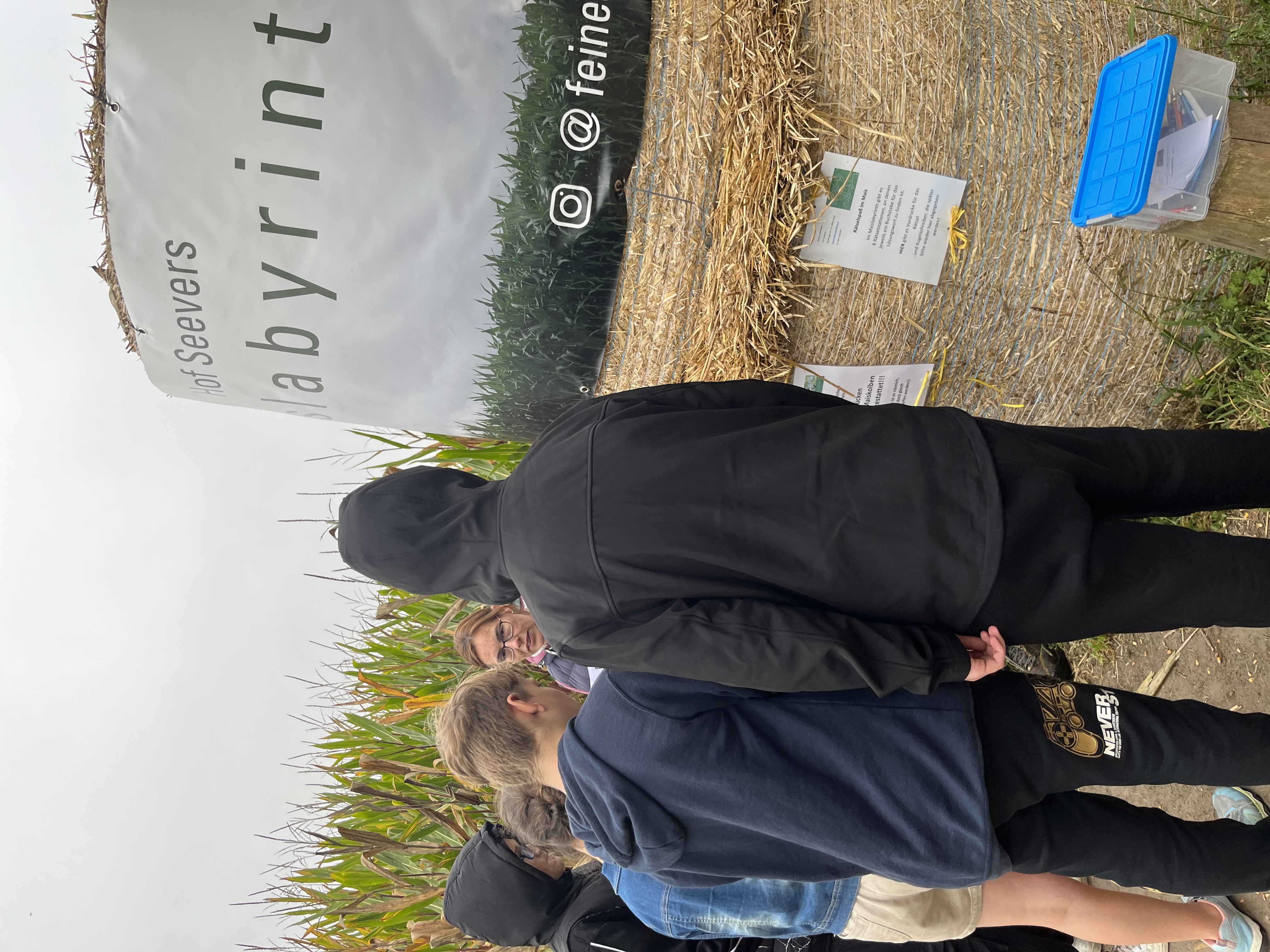 Am 19.09.2024 hat die Klasse S6 eine Exkursion zum Maislabyrinth vom Hof Seevers gemacht. Bevor es los ging, und die Schüler*innen das Labyrinth mit einem kleinen Zettel in der Hand erkunden durften, gab es eine Begrüßung von Frau Seevers. Sie erzählte spannende Fakten über das Maislabyrinth. Wusstet ihr zum Beispiel, dass der Mais direkt als Labyrinth wächst? Cool, oder?