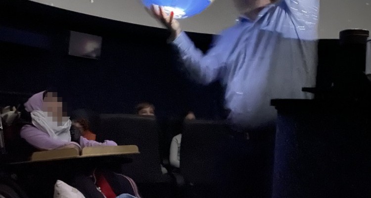 Da die Klasse S5 gerade das Thema „Unser Sonnensystem“ im Sachunterricht behandelt hat, ging es am Donnerstag, den 16.11.23, gemeinsam mit Klasse S4 ins Olbers-Planetarium Bremen. Nachdem alle einen Platz gefunden hatten, erschien an der Kuppel ein blauer Himmel mit Wolken und der Sonne. Dann ging die Sonne unter und der Sternenhimmel erschien. Das sah wunderschön aus. Gemeinsam sahen wir uns Sternenbilder und Planeten am Nachthimmel an. Danach gab es noch einen Film über den Hamster Elon, der einem Roboter helfen will, zurück ins Weltall zu fliegen. Viel zu schnell war das Programm beendet und es ging zurück zur Schule.