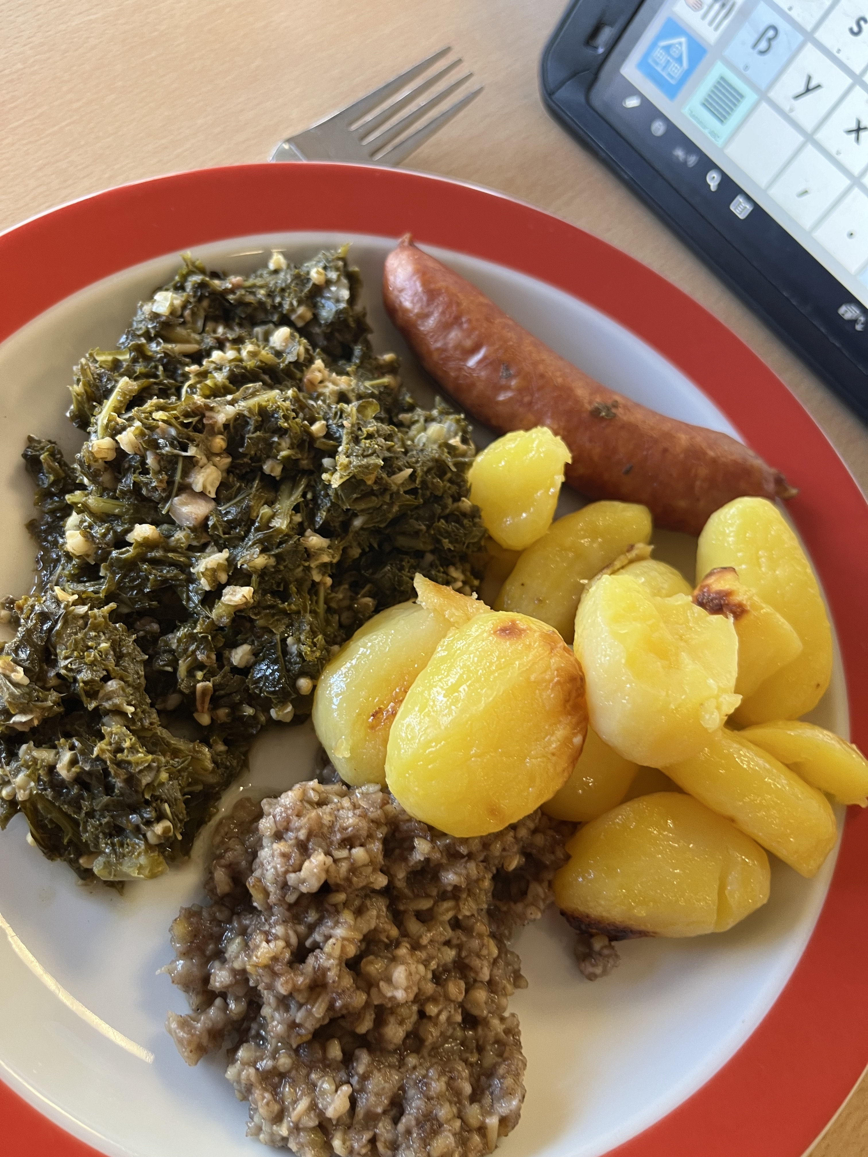 Nach unserem Kohlmarsch, gibt es in der Schule endlich Grünkohl, Kochwurst und Pinkel! Das war lecker!
