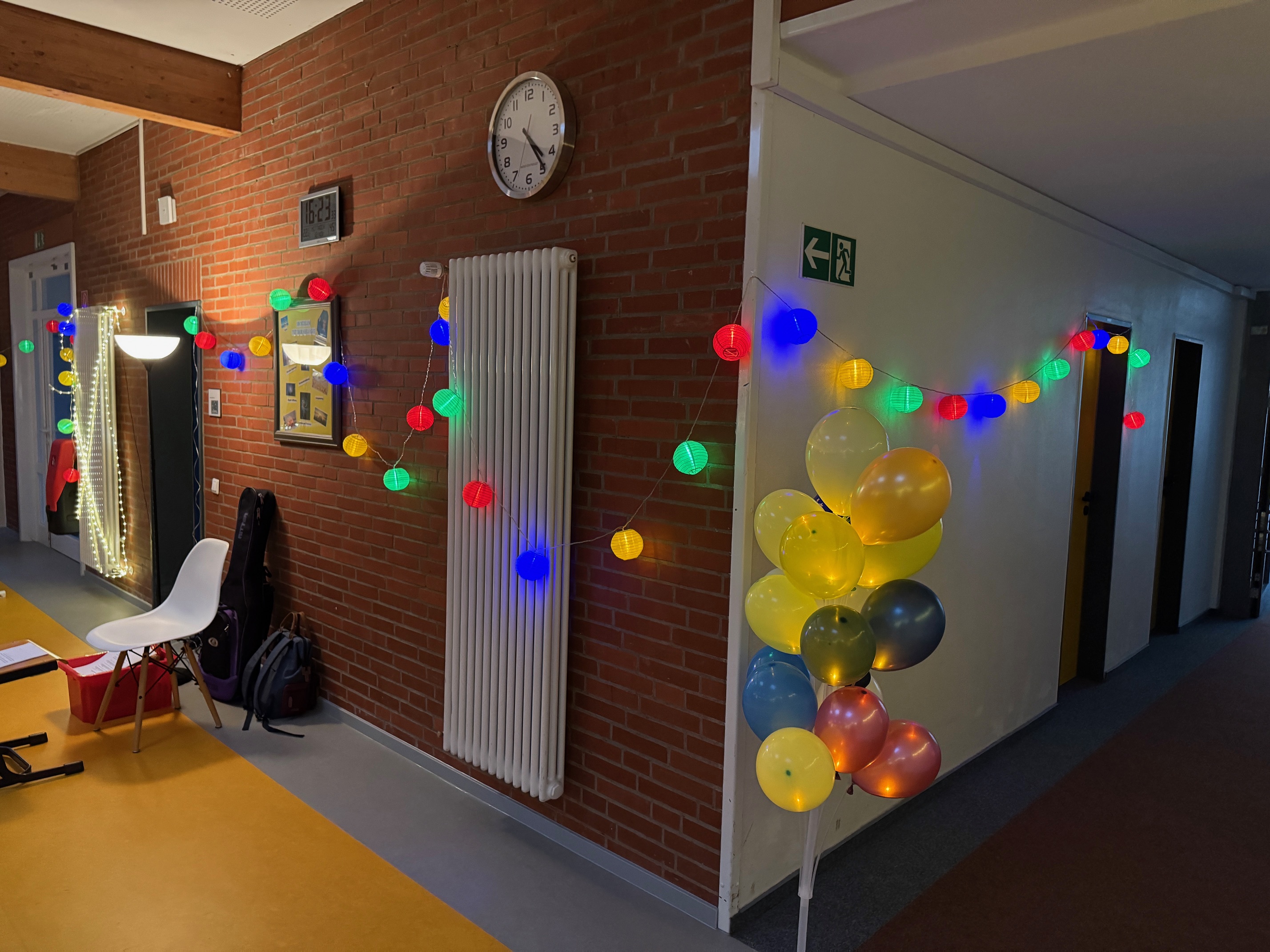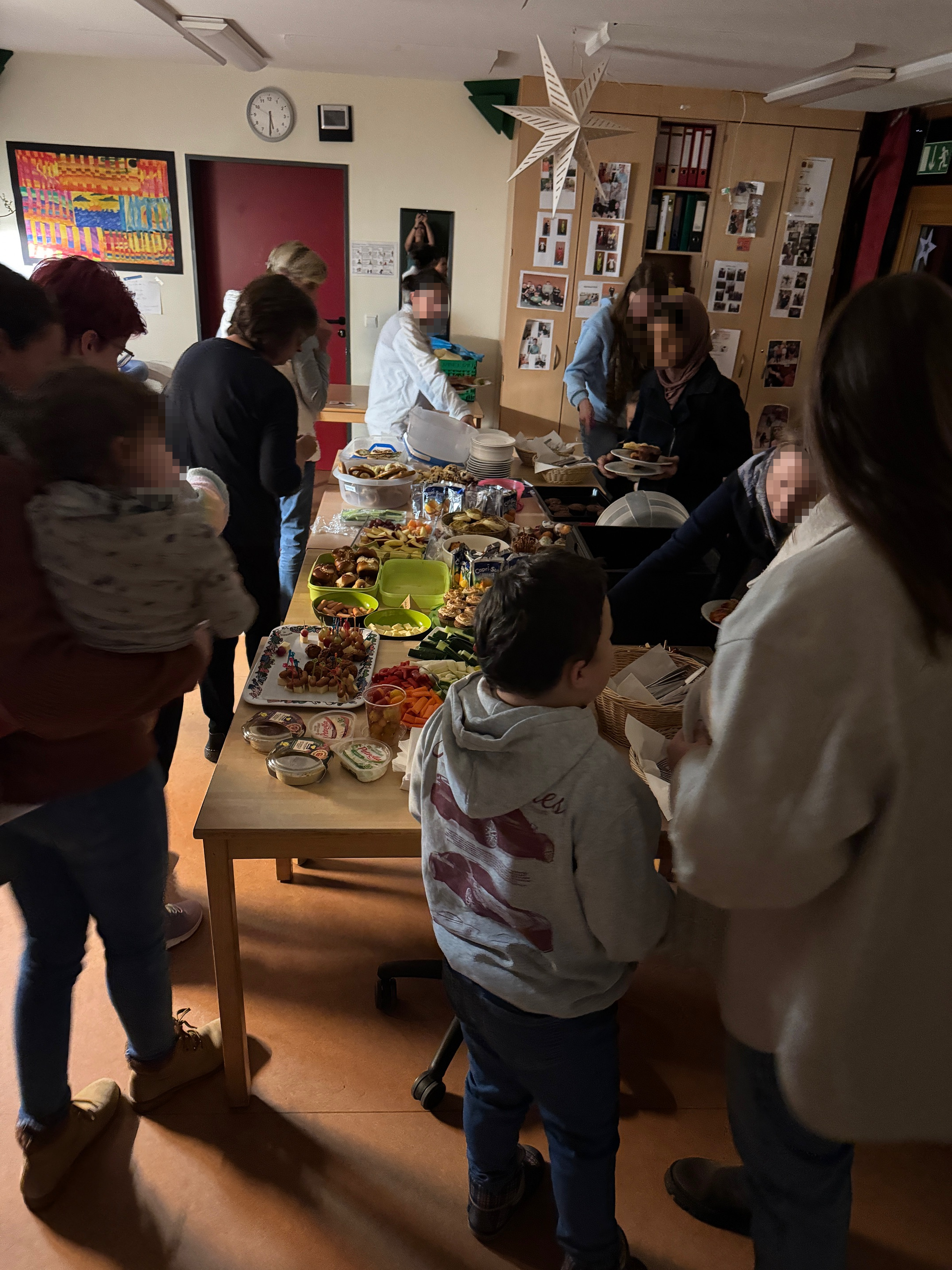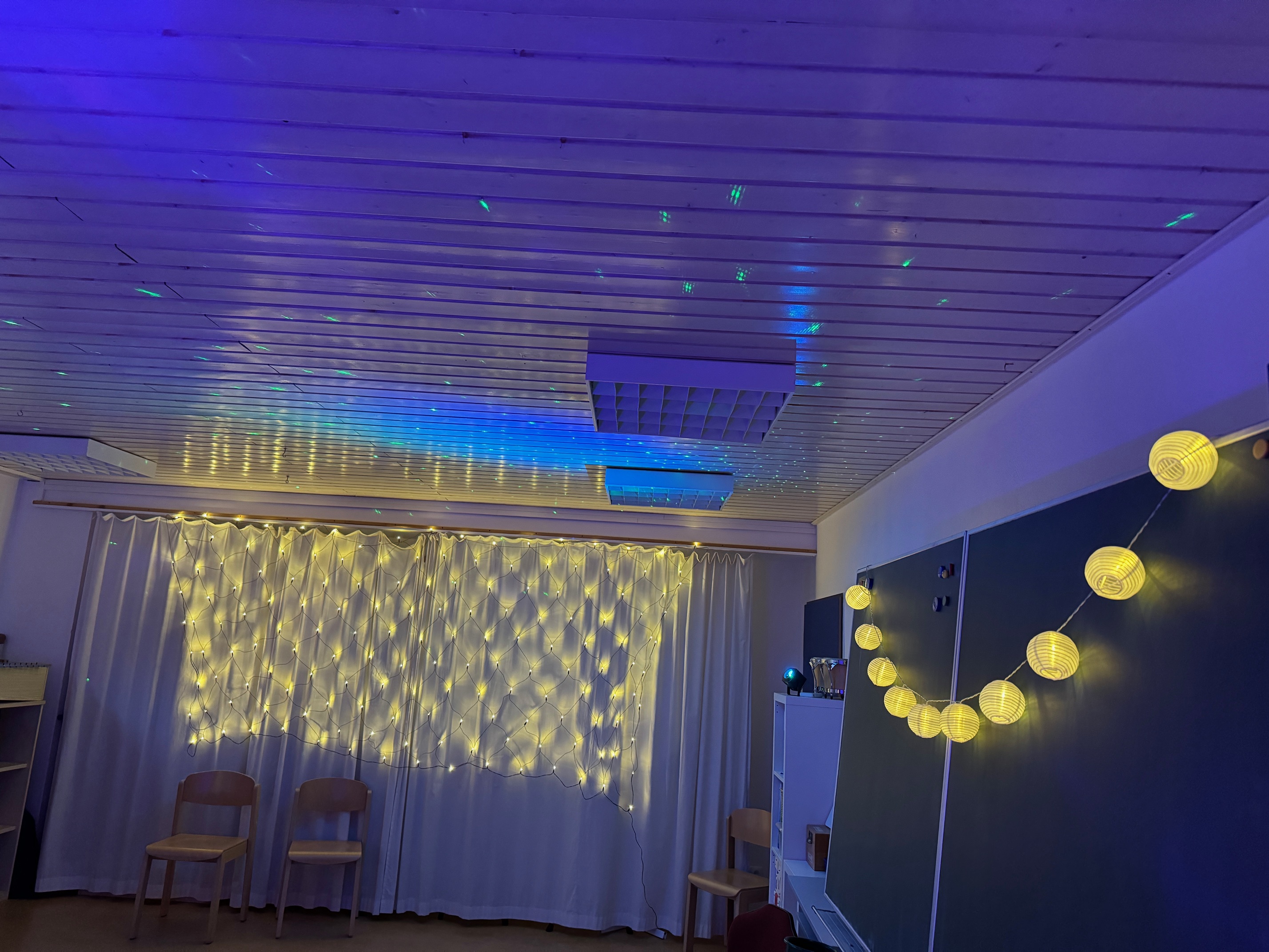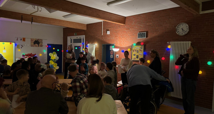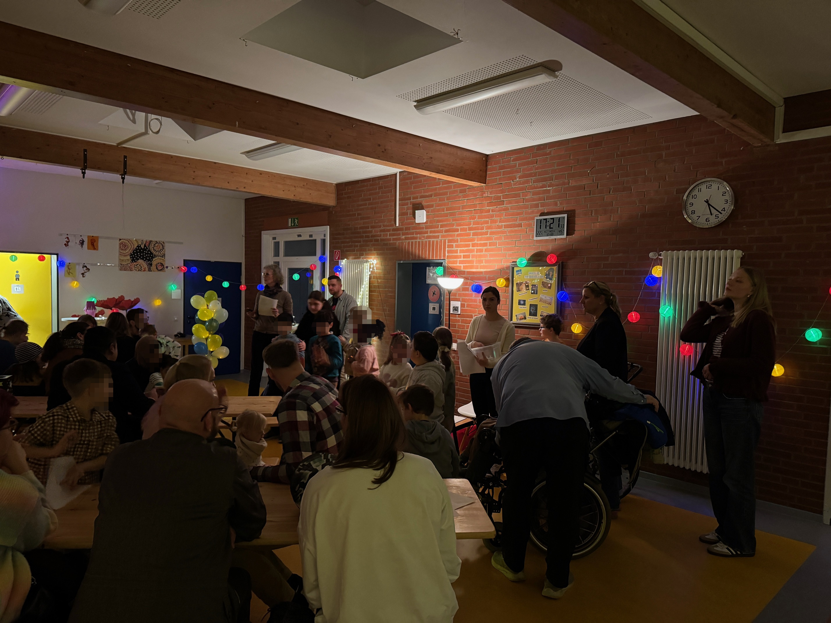 Am Mittwoch, den 12.11.25, haben die 5 Primarklassen der Erlenschule gemeinsam ein Lichterfest gefeiert. Nachdem die Halle toll mit Lichterketten und Laternen geschmückt war und es langsam dunkel wurde, kamen die Schüler*innen mit ihren Eltern und Geschwistern. Insgesamt nahmen ca. 70 Personen am Lichterfest teil. In einem Klassenraum wurde ein tolles Buffet aufgebaut, zu dem alle Eltern leckere Dinge beitrugen. Vielen Dank an dieser Stelle für das Engagement. Nach der Begrüßung trugen die Schüler*innen einige einstudierte Laternen- und Lichterlieder vor. Anschließend wurde das Buffet geräubert. Während die Erwachsenen sich in gemütlicher Atmosphäre unterhalten konnten, konnten sich die Kinder in einer Disco austoben oder in einem Klassenraum malen und prickeln. Schell waren 1 ½ Stunden um und nach einem gemeinsamen Abschlusslied ging es wieder nach Hause. Allen Beteiligten hat das Lichterfest sehr gut gefallen.