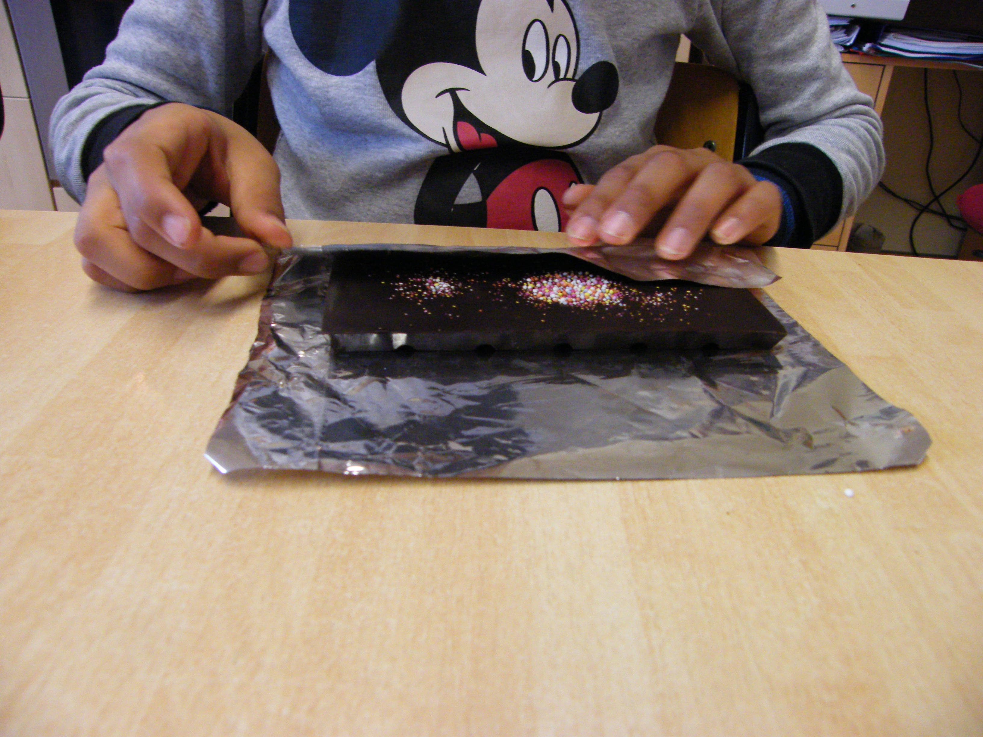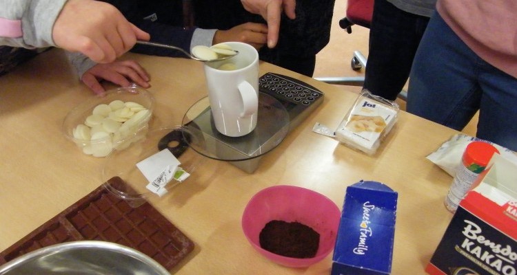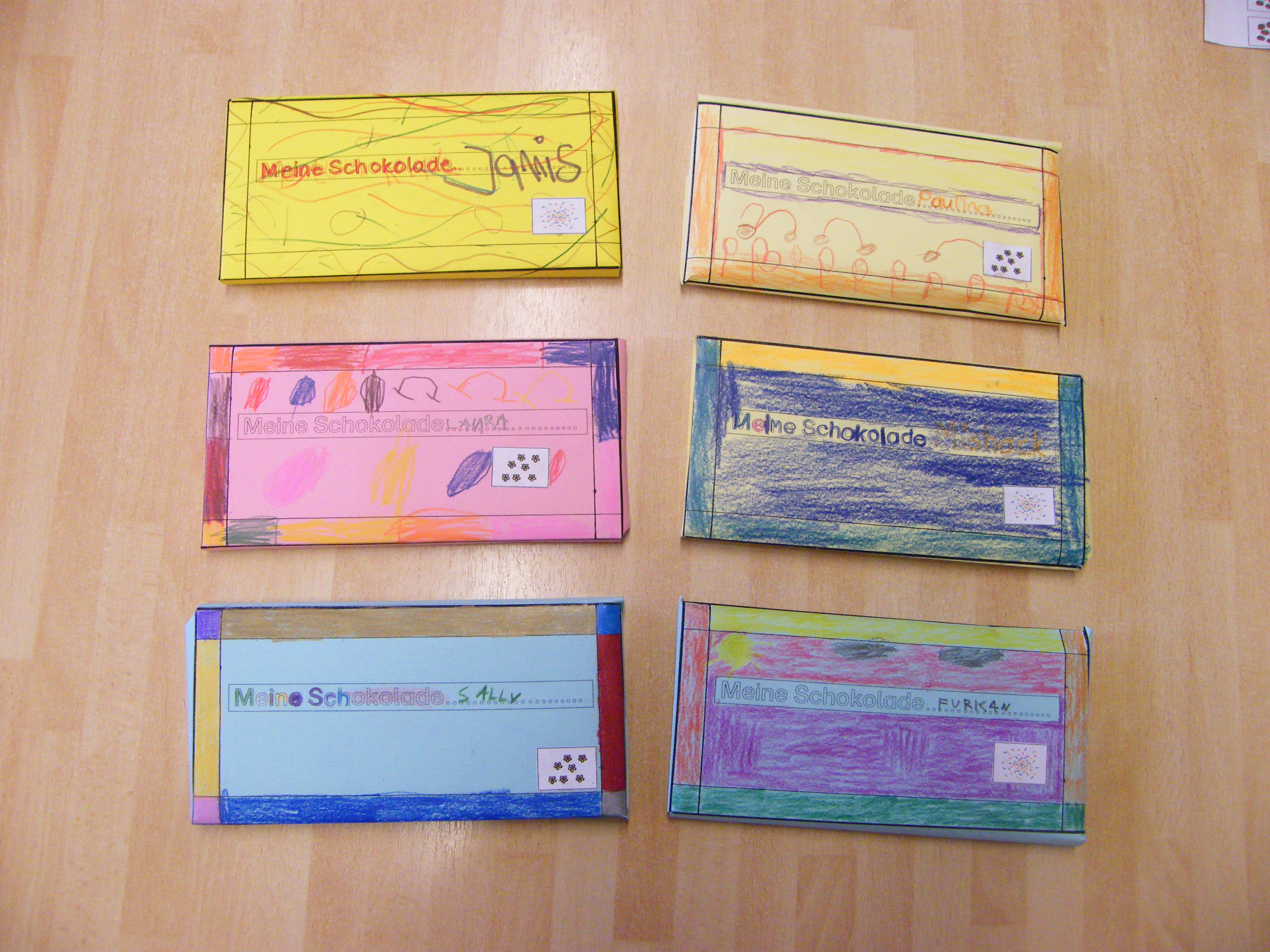 Schokolade! Jeder mag sie, aber wo kommt sie her und wie wird sie hergestellt? Im gemeinsamen Sachunterricht haben die Schüler und Schülerinnen der Klasse 5 und 6a alles über Schokolade gelernt. Zum Abschluss durfte jeder seine eigene Tafel Schokolade herstellen und nach seinen Wünschen verzieren. Dafür wurde Kakaobutter geschmolzen und Kakaopulver, Puderzucker und Vanillezucker dazu gegeben. Die Schokoladenmasse wurde dann in eine Form gefüllt und nach dem Auskühlen in eine selbst gestaltete Verpackung eingeschlagen. Lecker!