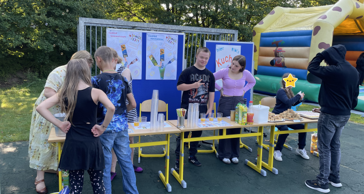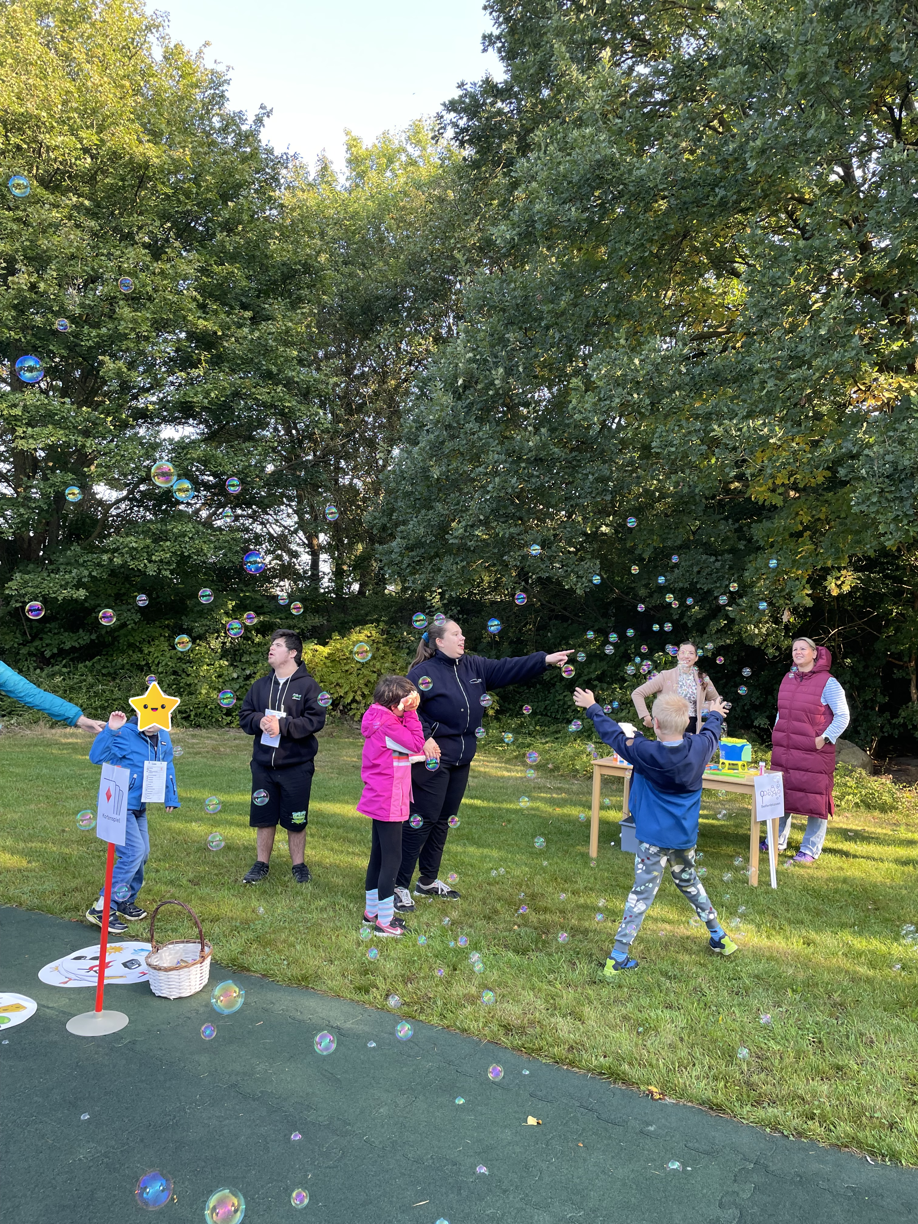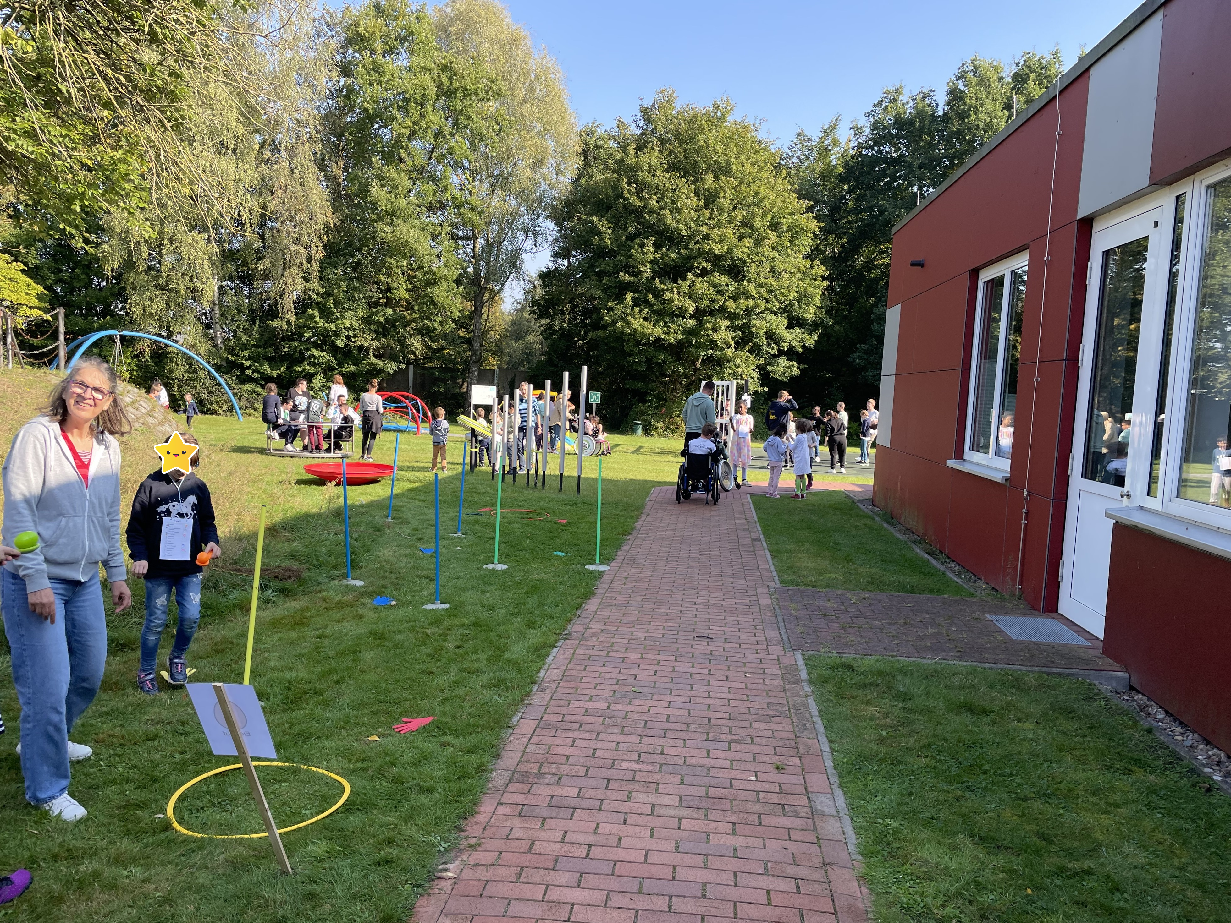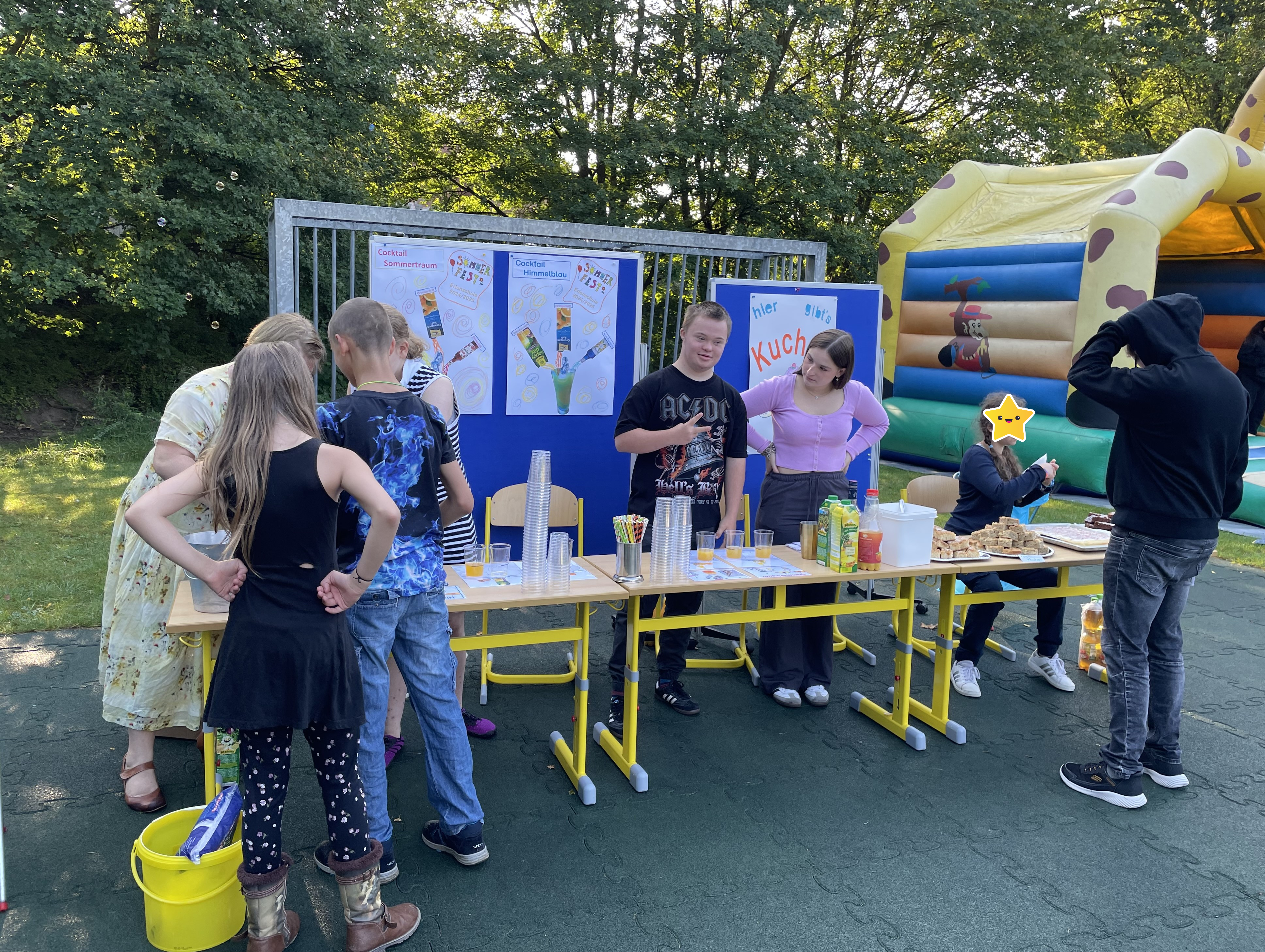 Am Freitag, den 20.09.2024, hat die Erlenschule Sommerfest gefeiert. Bei bestem Wetter konnten die Schüler*innen 2 Stunden lang verschiedene Spielstationen ausprobieren. Ob Wasserbomben-Zielwurf, Seifenblasen, Schatzsuche oder Hüpfburg, alle Stationen wurden ausgiebig bespielt. Wo sonst Fußball gespielt wird, sorgte Musik für super Stimmung. Es wurde getanzt und sowohl der Cocktail- und Kuchenstand, als auch die Zuckerwatte erfreuten sich großer Beliebtheit. Zum Abschluss gab es auf dem Garagenhof Hotdogs für alle. Viele Dank an Frau Szczpanska und Herrn Dilewski, die dieses tolle Sommerfest gemeinsam mit einer Gruppe von Schüler*innen organisiert haben.