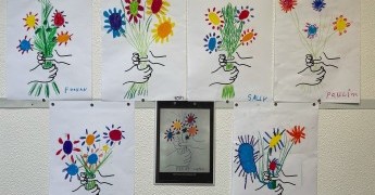 Schüler/innen der Klasse S3 malen "Hände mit Blumen".
