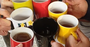 Klasse A2 testet ihren selbstgemachten Apfelpunsch.